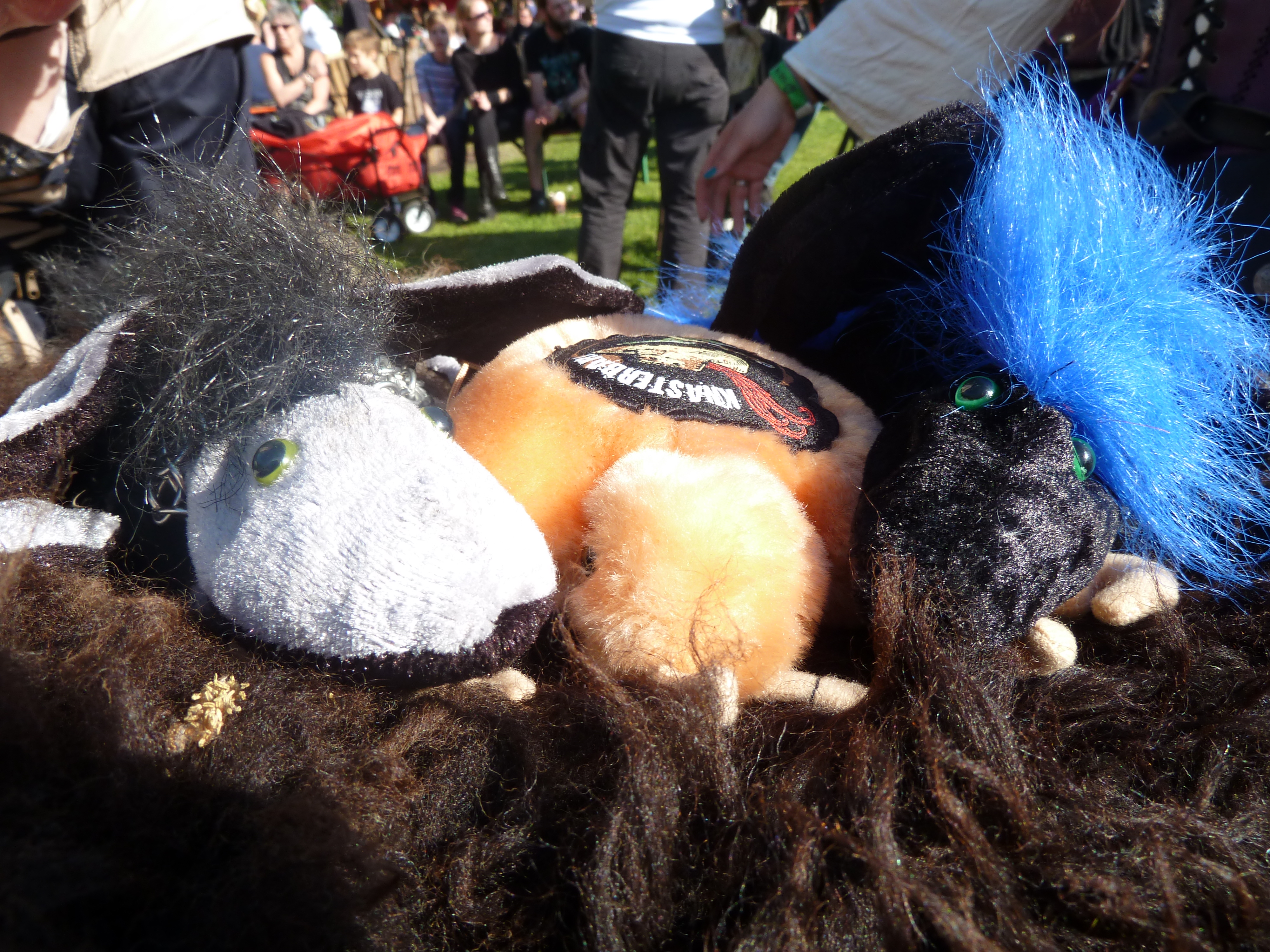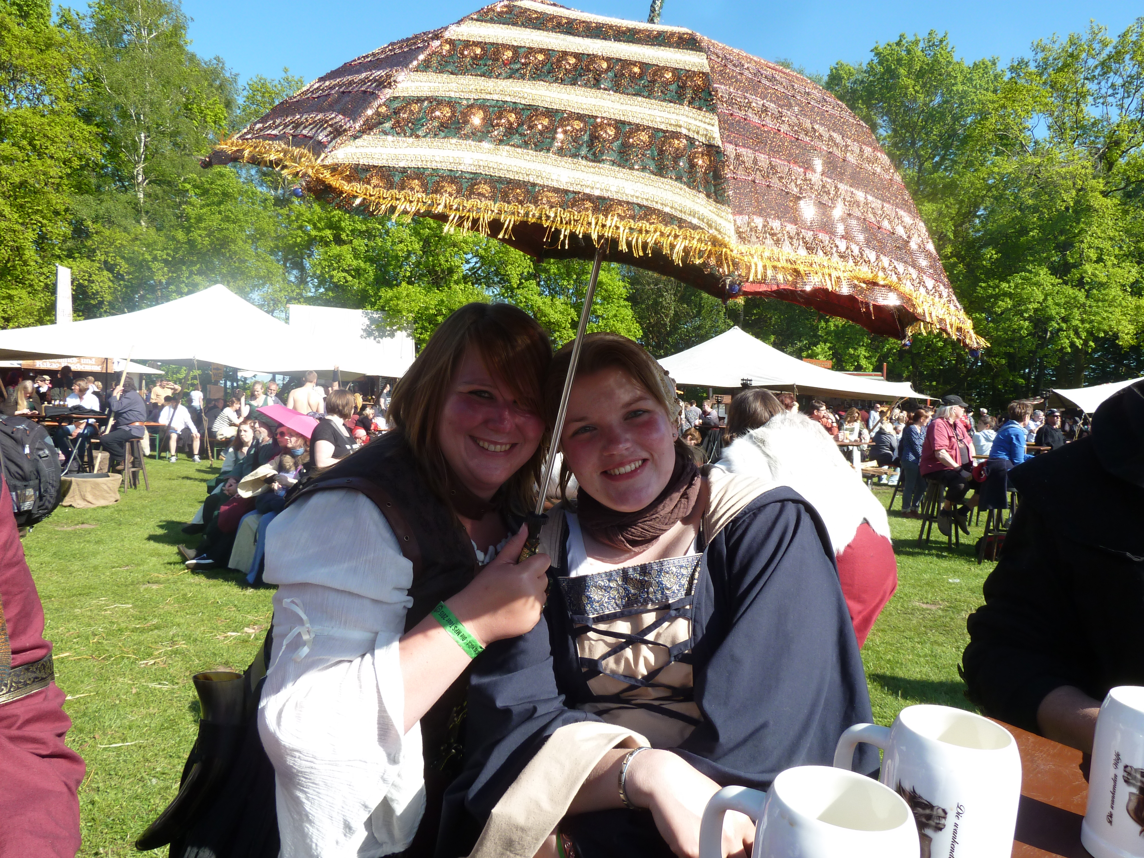 Nach einer kleinen Erfrischung wurde das Gelände von den Wölfe-Damen erkundet und die Marktstände akribisch durchforstet. Erglittert wurden: Ein Gesellschaftspiel der Dussel-Zofe, so wie ein mega glitternder Glitter-Sonnenschirm der Heulzofe.