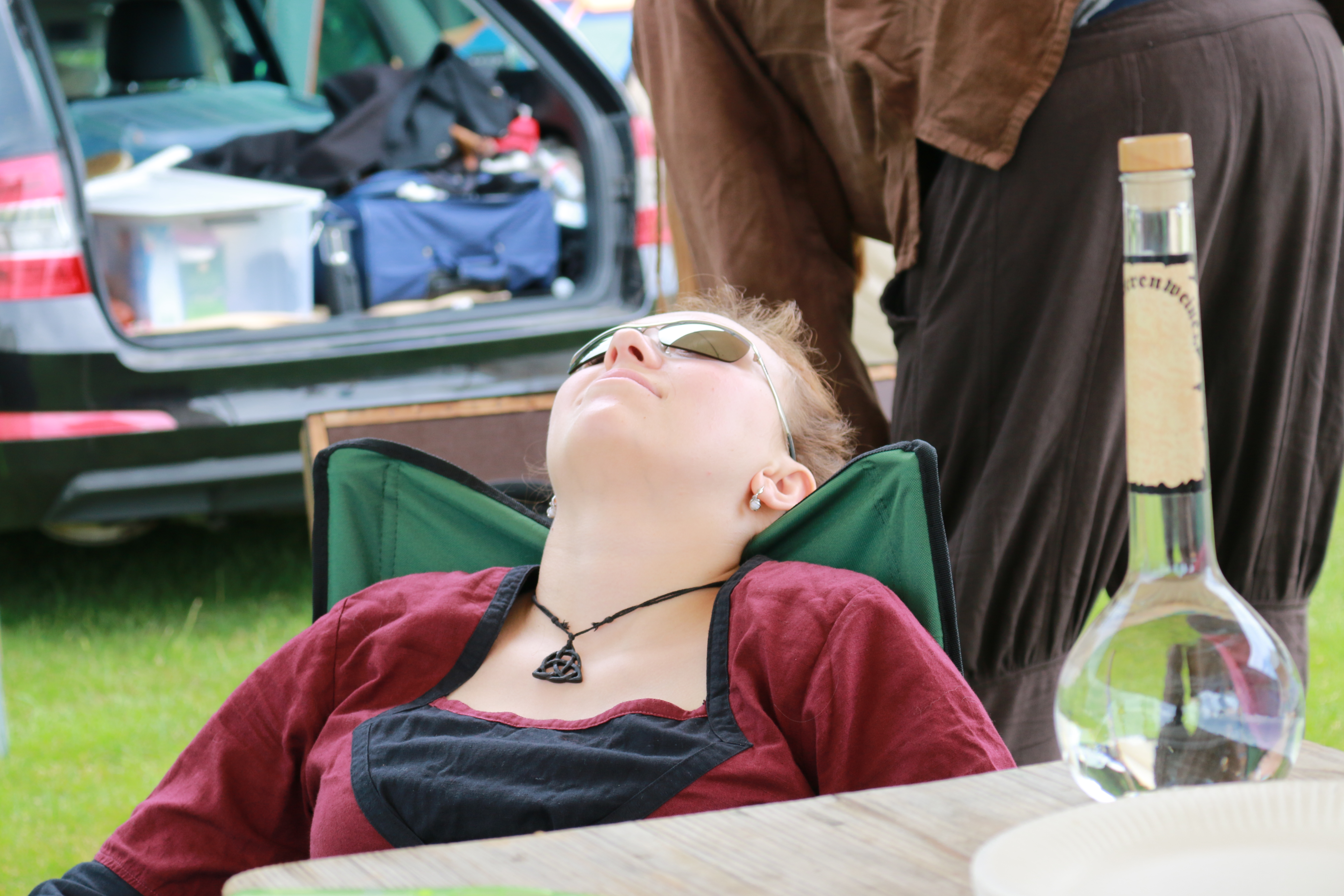 Der Aufbau war schnell erledigt und der Abend so schön mild, dass wir noch die halbe Nacht unter unserer Lagerplane bei Speisen, kalten Getränken und lustigen Spielen verbracht haben. Wir waren auch nicht lange unter uns, hatten viele Gäste und lange Gespräche. Wir Wölfe haben immer gerne Besuch und jeder Gast ist stets willkommen.