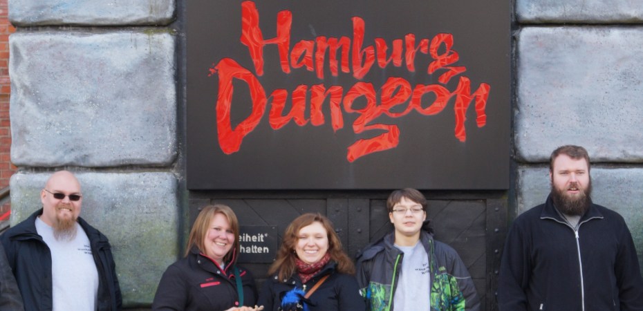 Was das Rudel nicht wusste, war, dass Hamburg dieser Tage von einem unheilvollen Fluch belegt ist. Denn als sie eines der alten Speicherhäuser betraten, verirrten sie sich heillos in den verschlungenen Katakomben des von der Pest, dem großen Hafenbrand und Piratengeistern gebeutelten Hamburg. Nur knapp entkamen sie der Inquisition, sie heuerten als Piraten an und entkamen so aus dem verfluchten Verließ. Auf den Schreck und zur Feier der Freiheit gab es erst mal ein Eis.