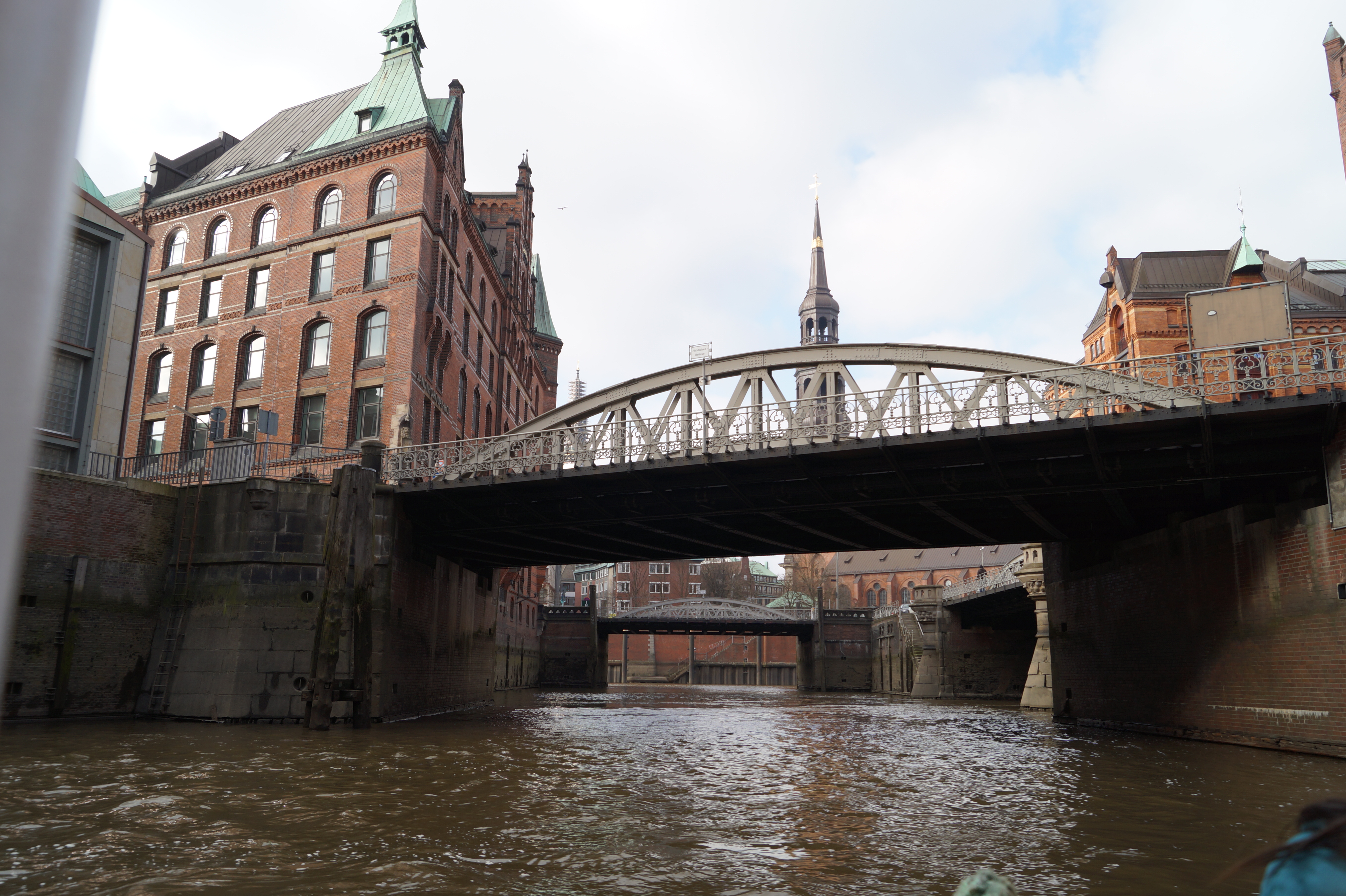 Dabei lernten wir jede Menge über den Hafenbetrieb, die ankernden Schiffe und die moderne Hafencity. Die Fahrt endete mit einem Abstecher durch die engen Kanäle der Speicherstadt, die wie wir erfahren haben nun Weltkulturerbe ist.