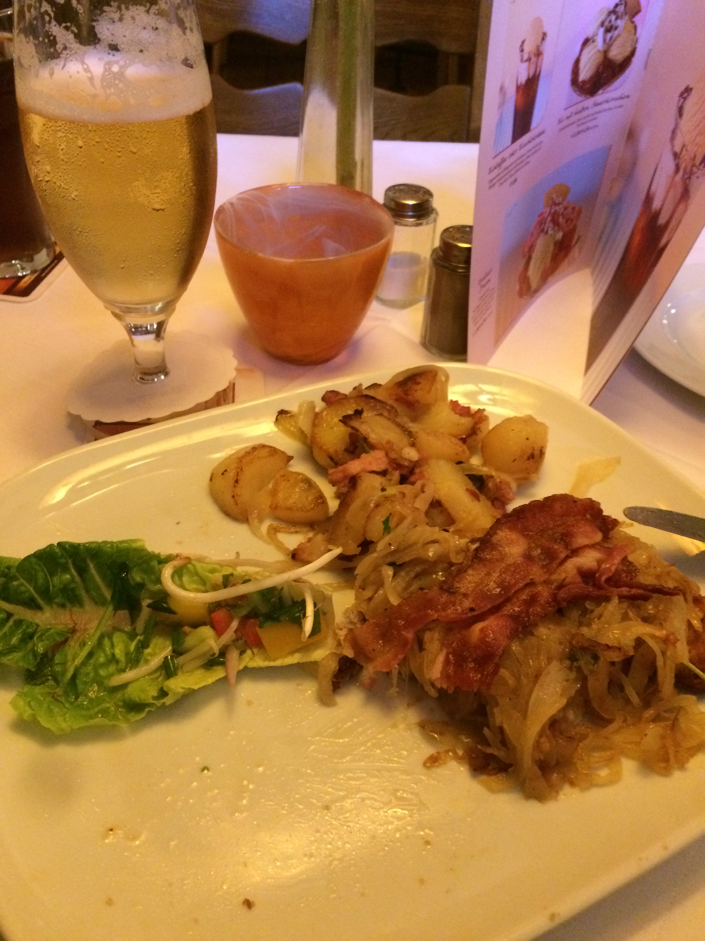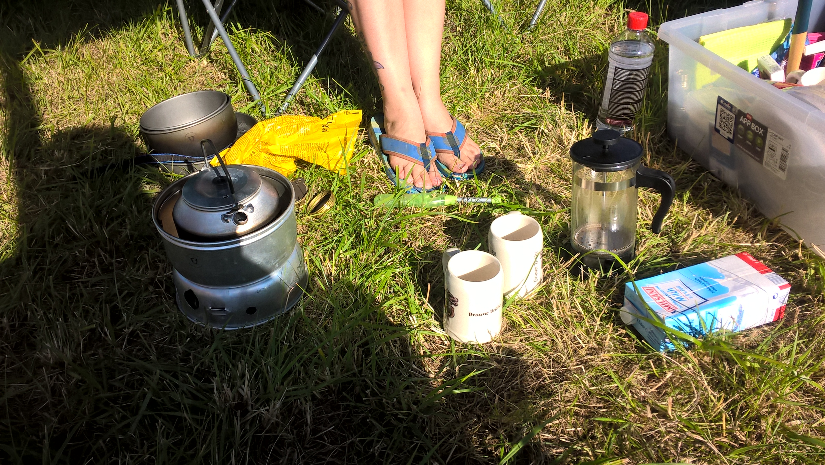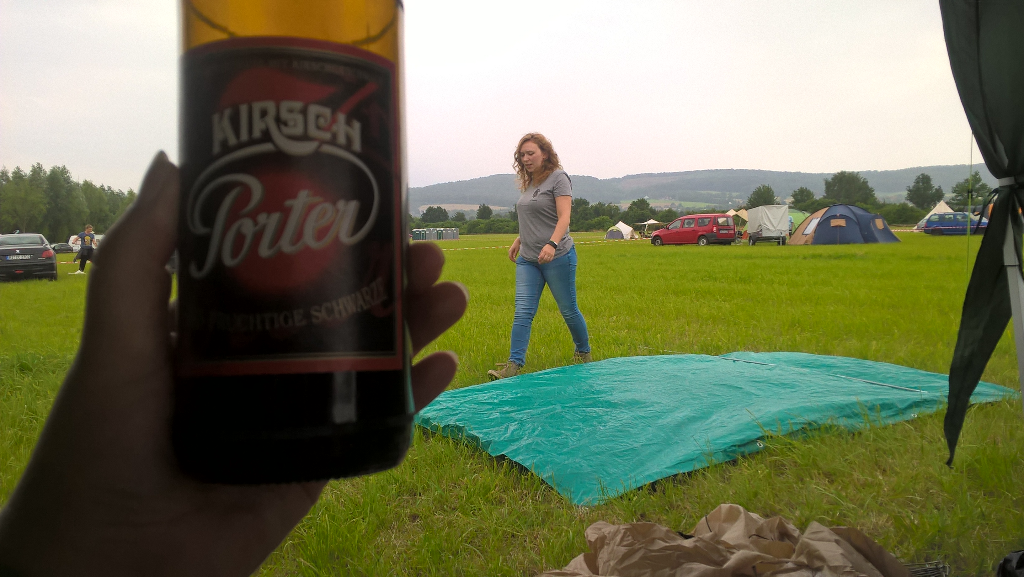 Irgendwann später war das Ziel in Sicht und das sehr winzige Lager war schnell aufgebaut. Da die beiden keine weiteren Freunde an diesem Wochenende dabei hatten, gesellte sich ein holländisches Ehepaar zu ihnen. Nach einem kleinen Ausflug in die bückeburgsche Innenstadt mit einem eher untraditionellen Essen, wurde der Abend mit den Nachbarn und natürlich Kirschbier doch nicht so einsam, wie die beiden es erwartet hatten.